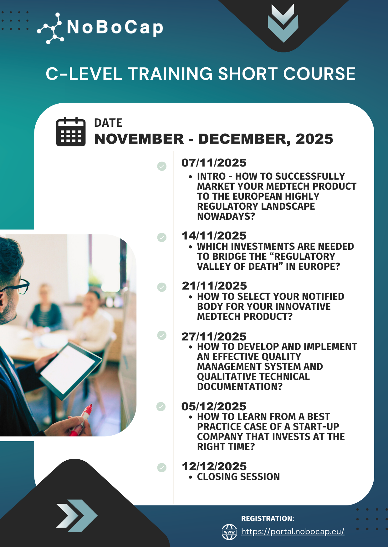 ZOOMMDR/IVDR Implementation and Resource Allocation for C-level Management of MOs is a specialized short course designed for C-level executives. It offers practical training on how to effectively allocate time, budget, and other essential resources needed by Market Operators to prepare comprehensive dossiers for Notified Bodies. 🔹 First step! Create your account on the NoBoCap Environment at https://portal.nobocap.eu.🔹 Then, go to…
